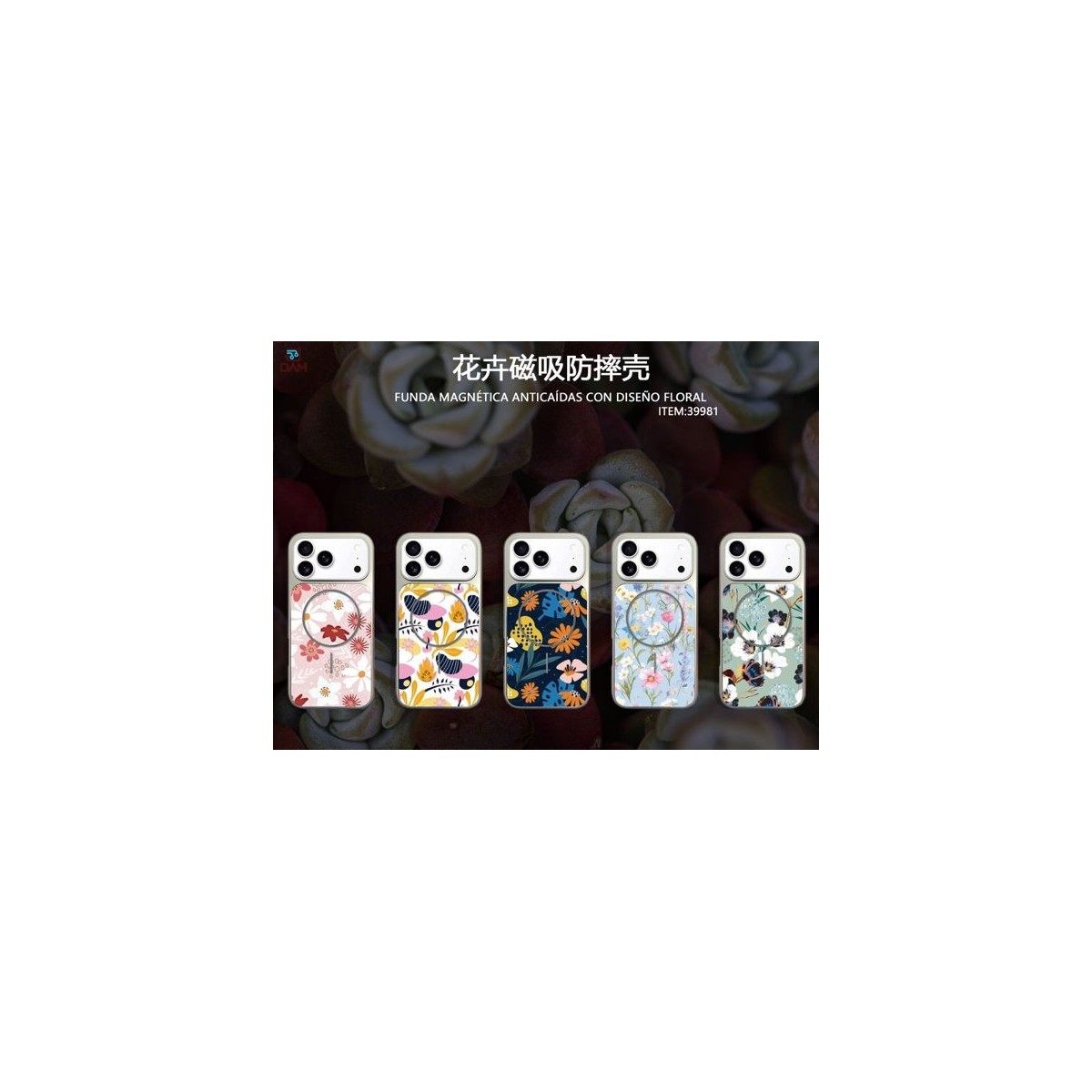 IP 13 PRO MAX FUNDA MAGNETICA ANTICAÍDAS CON DISEÑO FLORAL