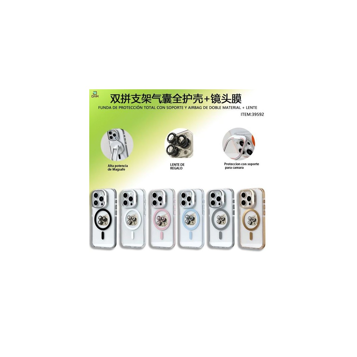 IPHONE 17 FUNDA DE PROTECCIÓN TOTAL CON SOPORTE Y AIRBAG DE DOBLE MATERIAL + LENTE
