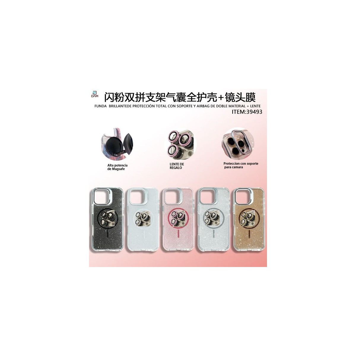 IPHONE 17 PRO MAX FUNDA BRILLANTE DE PROTECCIÓN TOTAL CON SOPORTE Y AIRBAG DE DOBLE MATERIAL + LENTE