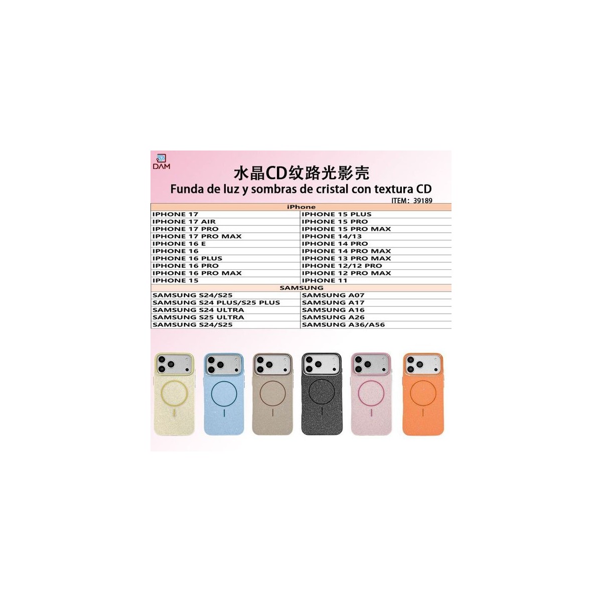 IPHONE 16 E FUNDA DE LUZ Y SOMBRAS DE CRISTAL CON TEXTURA CD